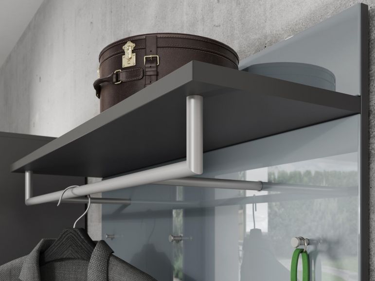 Een garderobekast ontworpen voor extra opbergruimte. Het product beschikt over een garderobestang die tot 10 kg kan dragen plus vijf haken met elk 3 kg draagvermogen.